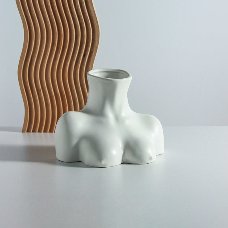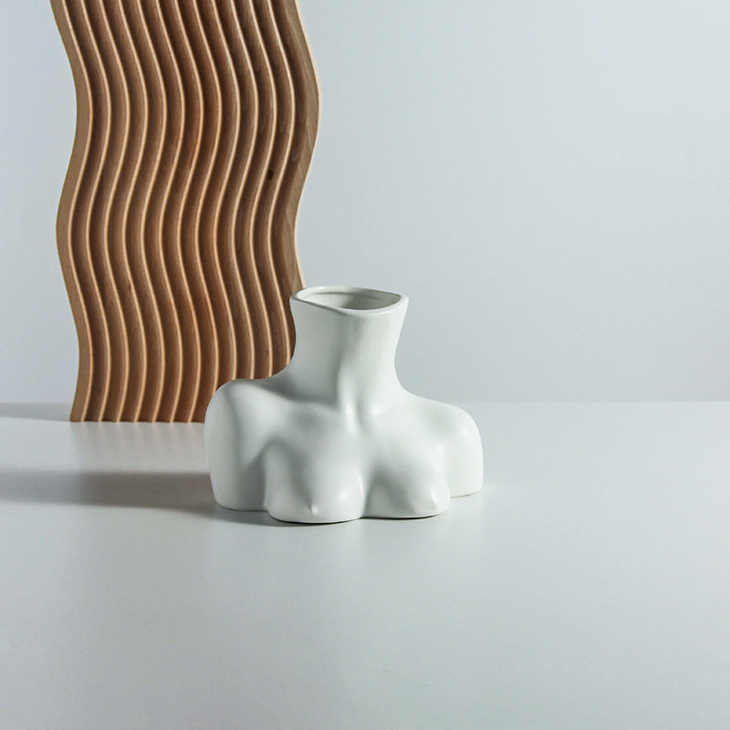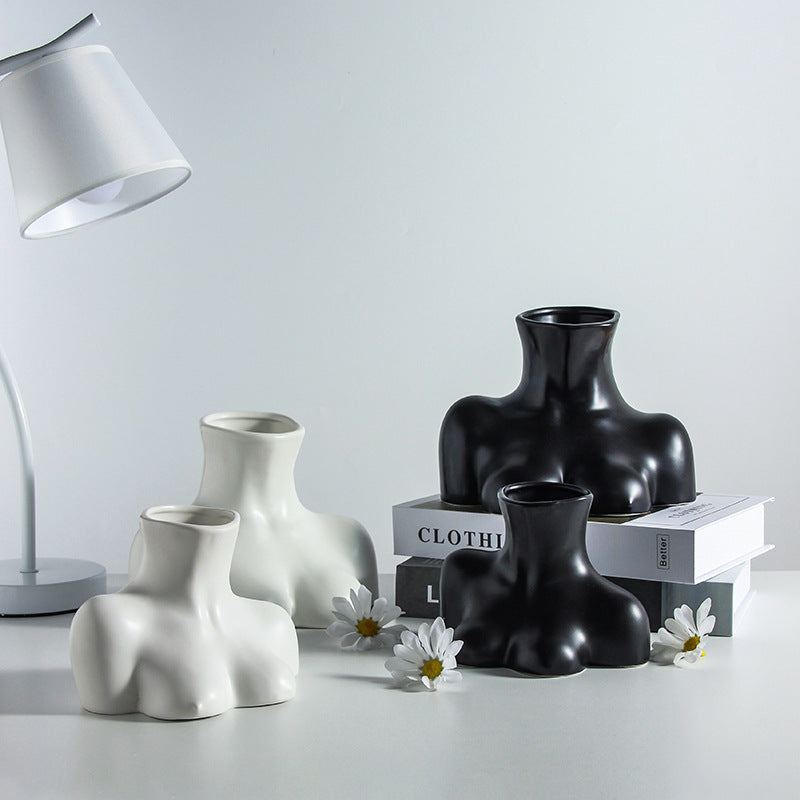 Nordic ins creative body vase half body ceramic living room